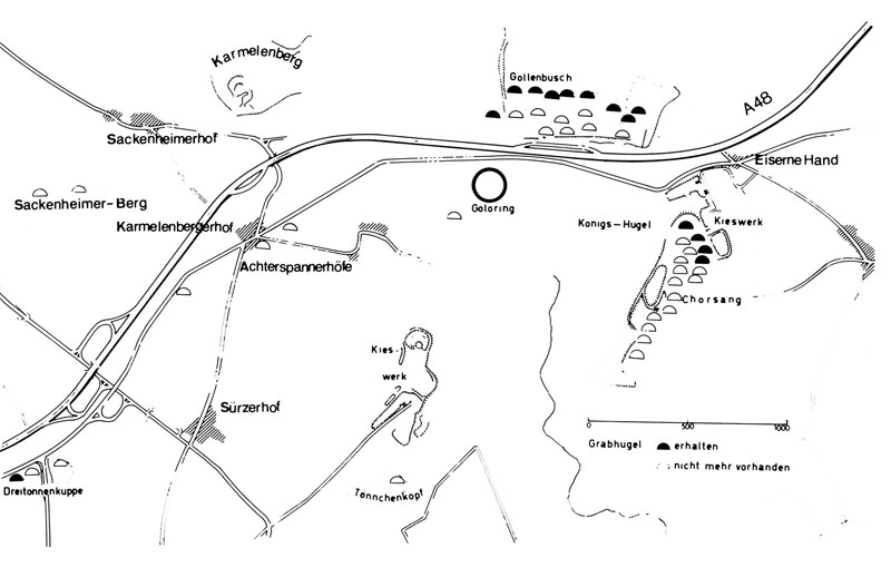 Am Übergang von Maifeld zur Pellenz am Südrand der Eifel, nahezu an der höchsten Stelle eines von Westen her leicht ansteigenden und nach Osten mäßig abfallenden Höhenrückens zwischen Mosel und Rhein, liegt dieses schon erwähnte Kobern-Bassenheimer Gräberfeld, in dessen Zentrum sich der Goloring befindet. Den noch erkennbaren westlichen Ausläufer bildet die Dreitonnenkuppe, um die sich ehemals noch weitere kleinere Grabhügelfelder gruppiert haben. Von dieser beherrschenden Lage reicht der Blick sowohl in das Moseltal, als auch zum Rhein, der hier in einem weiten Bogen das Neuwieder Becken durchfließt und das er fast in westlicher Richtung durch die Andernacher Pforte verläßt.
